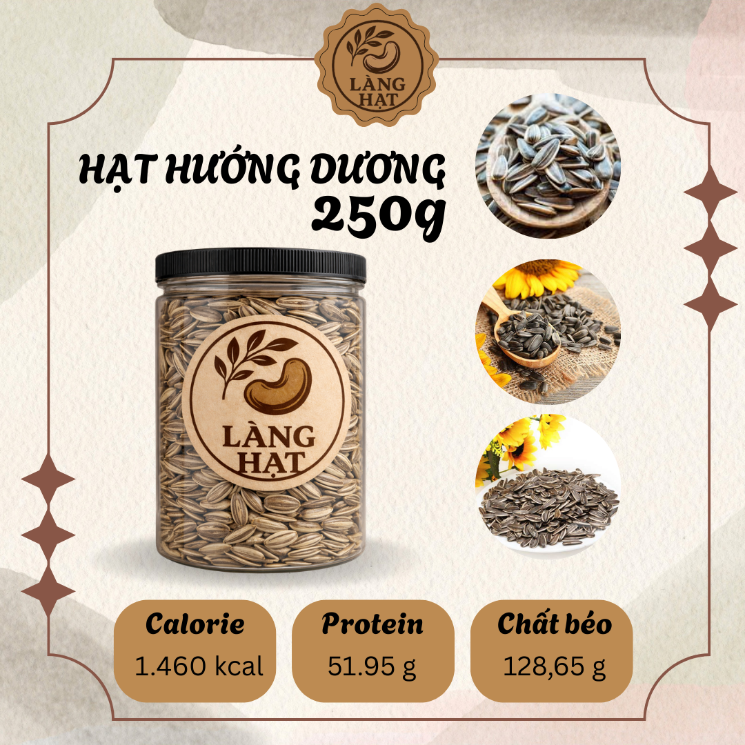 Hạt Hướng Dương 250g được xử lý sạch, sấy hoặc rang ở nhiệt độ phù hợp để giữ nguyên hương vị tự nhiên và giá trị dinh dưỡng.