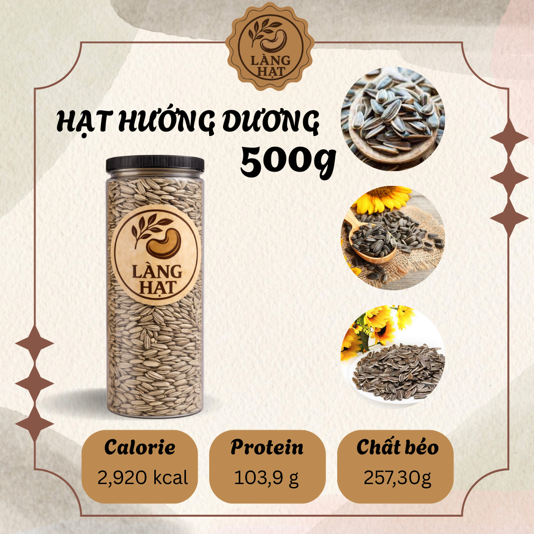 Hạt Hướng Dương 500g giàu chất béo tốt và protein giúp cung cấp năng lượng ổn định, phù hợp làm bữa phụ giữa ngày cho dân văn phòng, học sinh – sinh viên hoặc người vận động nhiều.